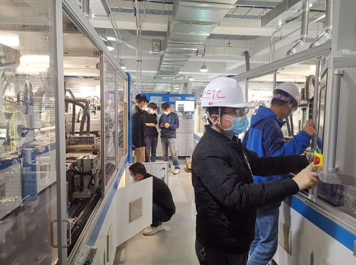 方案确定,马上实施,毫不耽搁。团队与时间赛跑,直至攻破技术难关,成功完成首台串焊机二次配接线工作,虽然时间已是凌晨,但是每个人的脸上都写着“值得”两个字!一个可能导致项目严重滞后的问题在24小时内妥善解决,无不彰显电科人走好科技自立自强之路的拼搏精神!