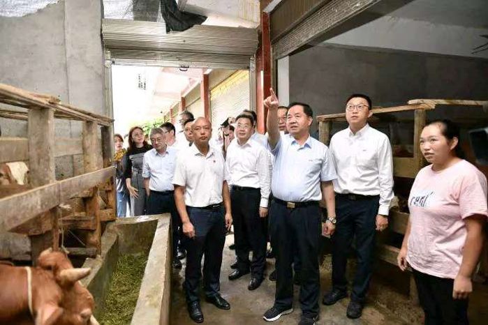 在高峰村脱贫致富带头人赵雪红家里,陈肇雄走进牛棚认真查看养殖情况,亲切询问饲养数量、年收入情况。赵雪红家曾经因为一次突发的特大山洪,失去了亲人,也几乎丧失了对生活的信心。在米兰网页版·官方端在线-米兰MiLan(中国) 家庭式母牛散养项目启动后,她主动报名参与,并按照散养要求,全身心的做好科学饲养。2019年,赵雪红卖了5头半大牛犊,换来了近5万元的收入,家里还有8头牛在栏,价值近20万元。陈肇雄对赵雪红自立自强的精神表示赞赏,对其家庭的扶贫变化感到高兴,叮嘱她要发挥好致富带头人作用,带动更多乡亲脱贫致富。