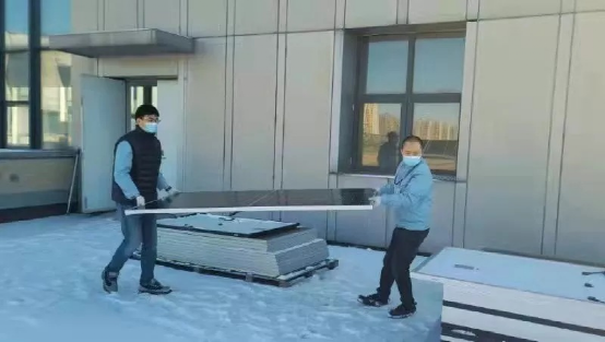 电科能源(18所)检测中心职工不畏风雪抢抓任务进度,面对客户希望将电站组件送样进行户外性能和老化测试的要求,检测中心骨干党员身体力行,带领团队顶风冒雪,争分夺秒进行户外测试。