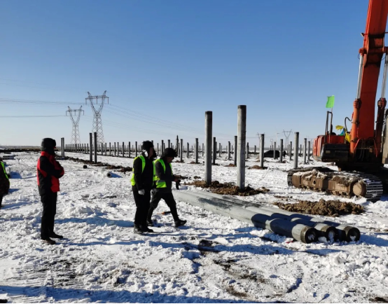 电科装备浴“雪”奋战,抢抓进度。在河北察北,新能源事业部地面电站项目组成员争分夺秒,推进项目进度。在辽宁鞍山客户现场,山西中电科新能源技术有限公司出差成员遇到强降雪天气,车辆无法正常通行,团队徒步前往客户现场。