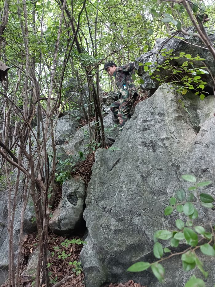 初到现场,没有测绘人员引路,没有地形地貌指示,没有上山踪迹可循,一切只得靠项目组成员自己去探索、去开拓,用脚步踏出一条条路,用身体力行去征服原始深山。由于缺乏上山经验,缺少开路工具,大家初始只能借助木棍在灌木丛生、荆棘遍布的深山中开垦出一条路。