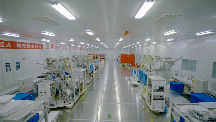 穿过电科装备北京烁科中科信公司制造中心的风淋系统,整条离子注入机研制产线映入眼帘,一台台设备完成装配调试后,输送至各集成电路先进产线,参与“中国芯”制造。